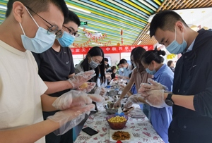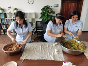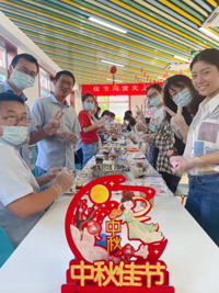 中关村活动由做传统月饼开始,五仁、豆沙、莲蓉馅料丰富;富贵的牡丹、清幽的兰花、喜庆的花好月圆,模具也是多种多样。大家选好自己喜欢的馅料和模具,兴高采烈地制作起来。传统月饼做好了,冰皮月饼接着做起来,有的同事一边做一边尝,享受这即刻便可品到的美味。昌平生产基地匠心独运地准备了象征丰收和团圆的馅饼,金黄的外皮里包裹着新鲜的牛肉,还有翡翠般的素馅儿,外焦里嫩,美味可口,清香四溢,唇齿留香,真切感受到家的味道。