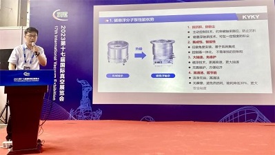 本次展会,中科科仪控股公司中科唯实、中科科美展出了旋片泵、自动压力调节蝶阀、变送器、三工位阴极转移系统等系列产品,吸引了众多真空行业知名企业、专业人士和客户到展台参观交流。在真空行业技术交流会环节,中科科仪时剑文博士受邀做《磁悬浮分子泵技术及半导体行业应用》报告,分享了中科科仪磁悬浮分子泵研发进展与行业应用。此外,中科科仪技术人员也在展台为现场观众详细介绍了中科科仪真空获得、真空测量、真空应用等全系列产品,引发热烈反响。